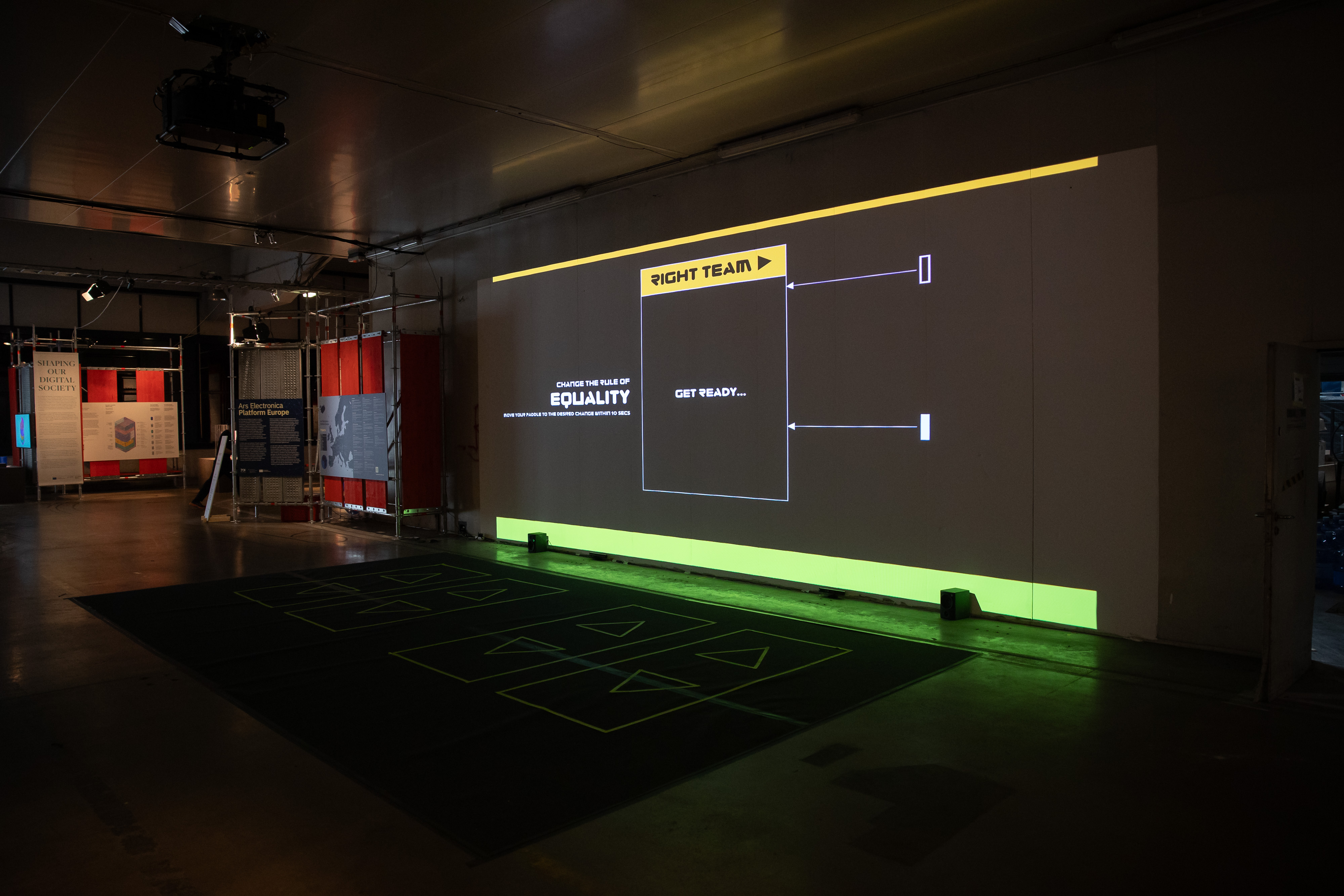 Playing Democracy 2.0 is a giant multiplayer game of Pong exploring the principles of democracy. Participants don’t just play, they rewrite the rules to explore and challenge the limits of democracy. Designed for up to four players, they control game paddles using their body movements tracked by 3D cameras.