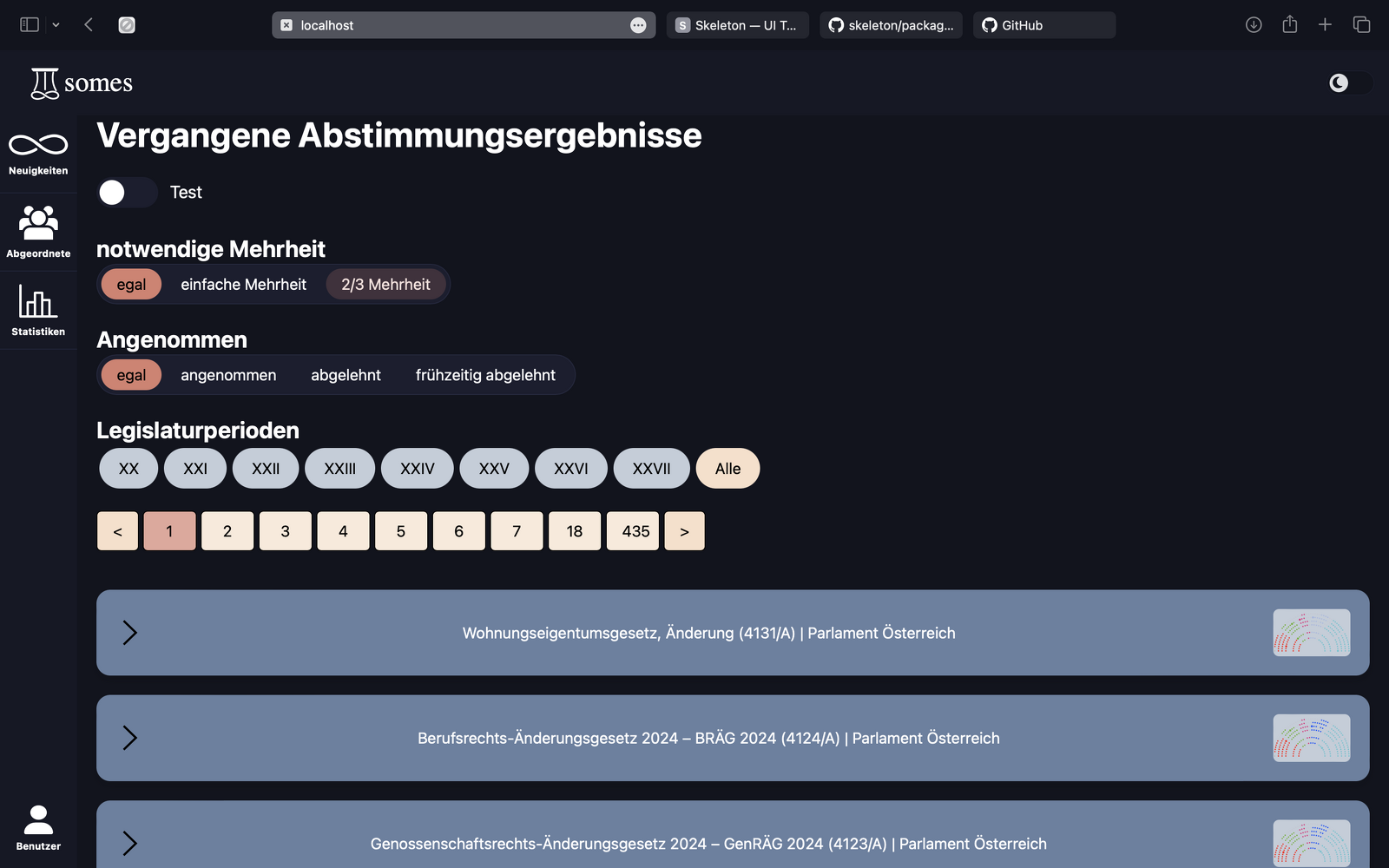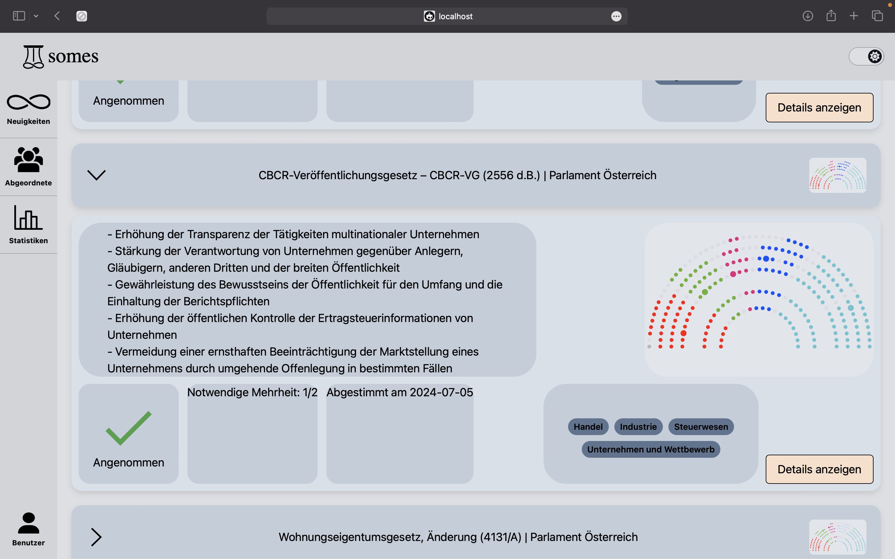 Through its holistic approach called "somes", the project group aims to counteract disinformation (controlled or unintentional), algorithmic filter bubbles, corruption, and political disenchantment by making parliamentary and government-specific activities, processes, and information accessible.