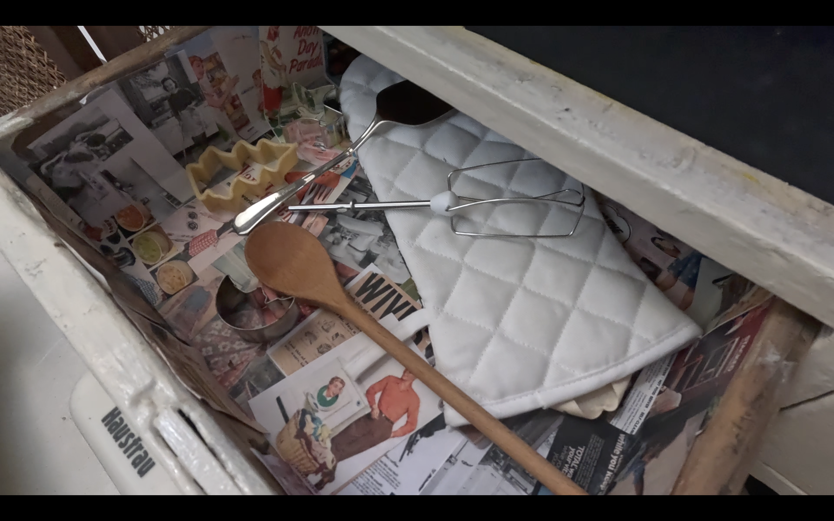 An interactive cabinet with three drawers demonstrates how the image of women and their role in society has changed over the decades. While the first drawer reveals old advertisements and stereotypes, the second documents the struggle for equality and emancipation. The third drawer showcases the modern tradwife trend on social media, which, however, seems to be undermining many of feminism's achievements.