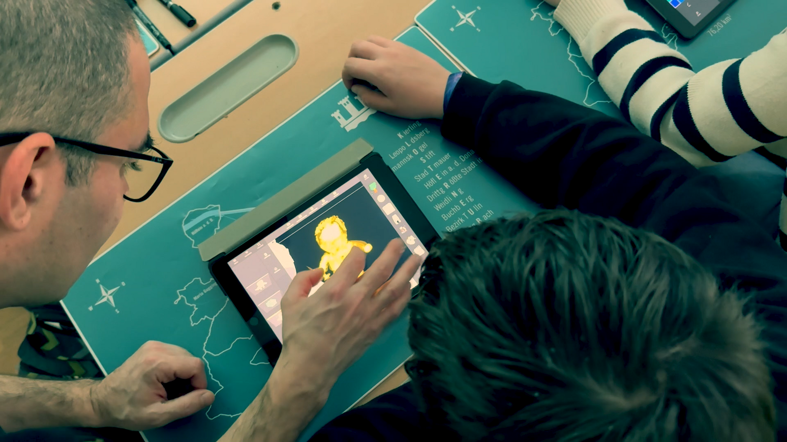 GEH.BEAT conducted a media project on digital storytelling at the Klosterneuburg Special Needs School, working with eight students for six weeks to develop characters and a plot for a short film. They independently developed superheroes, giving them superpowers, names, appearances, and personal weaknesses (their kryptonite, so to speak), and created a trashy disaster clip in the tradition of B-movies. Everything was created using the Tagtool app, a digital drawing tool that allows you to design and animate characters, shapes, and colors on iPads.