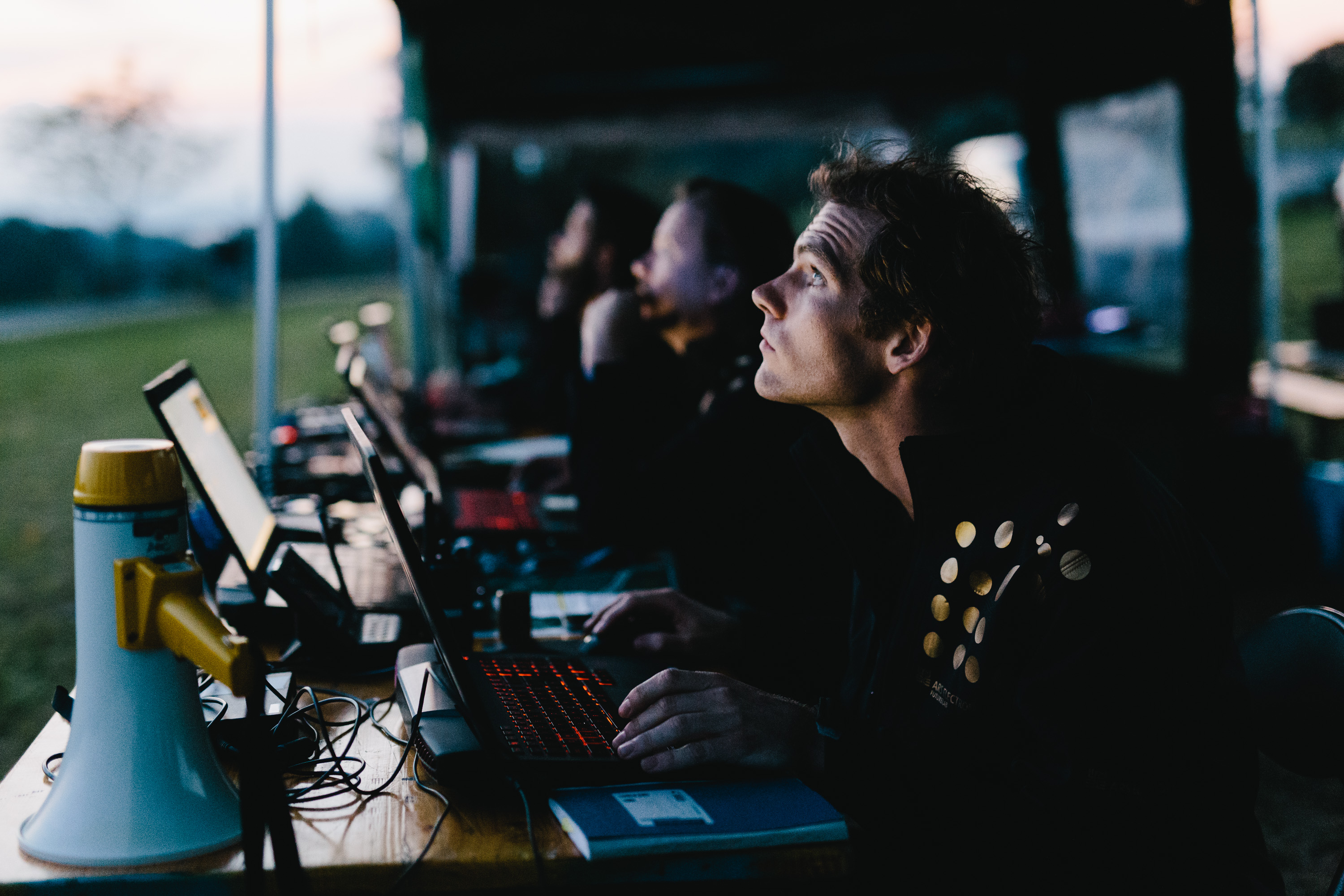 The pilots are checking the flight of the drones with the utmost concentration - both on screen and in the air.
