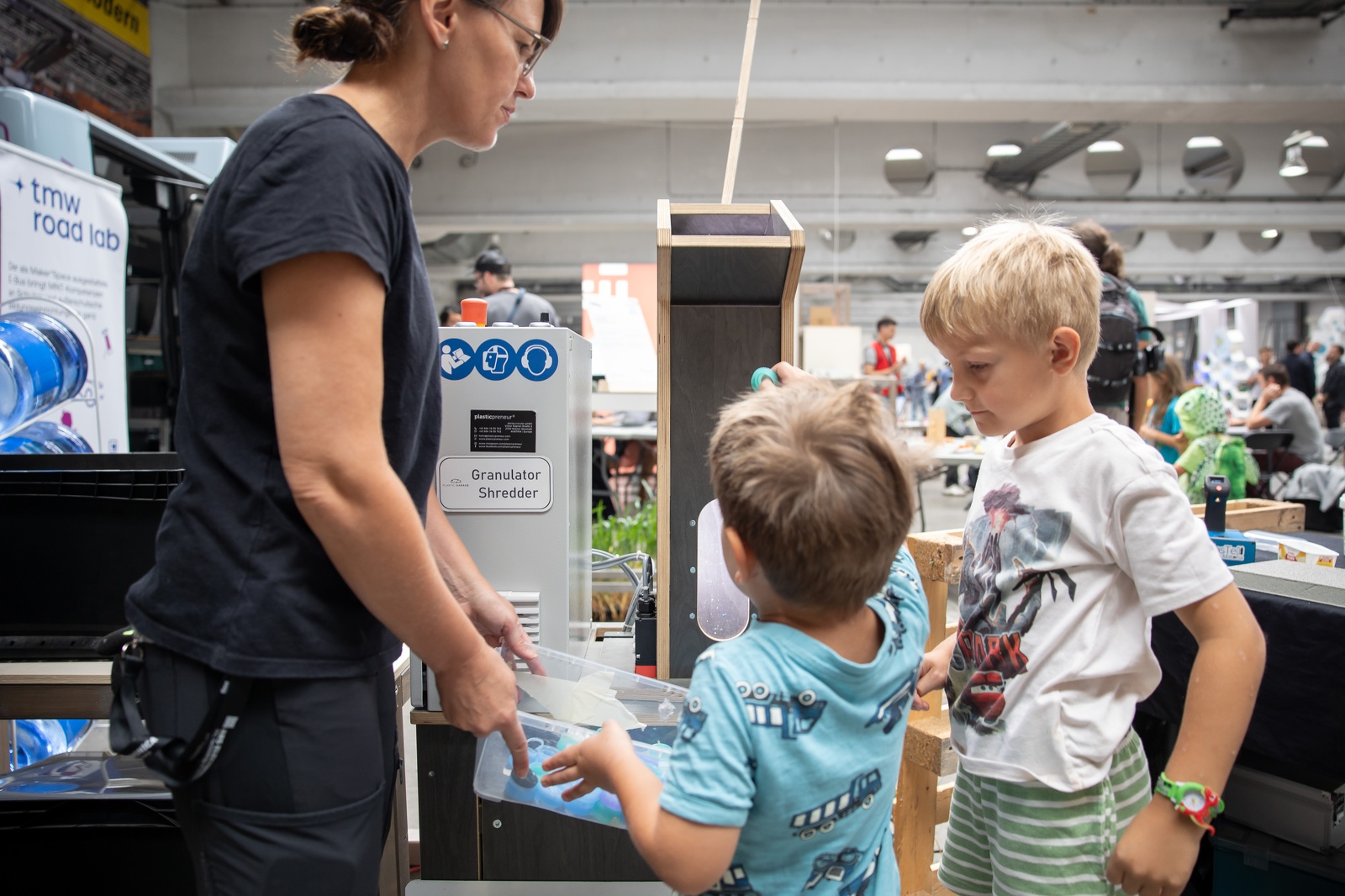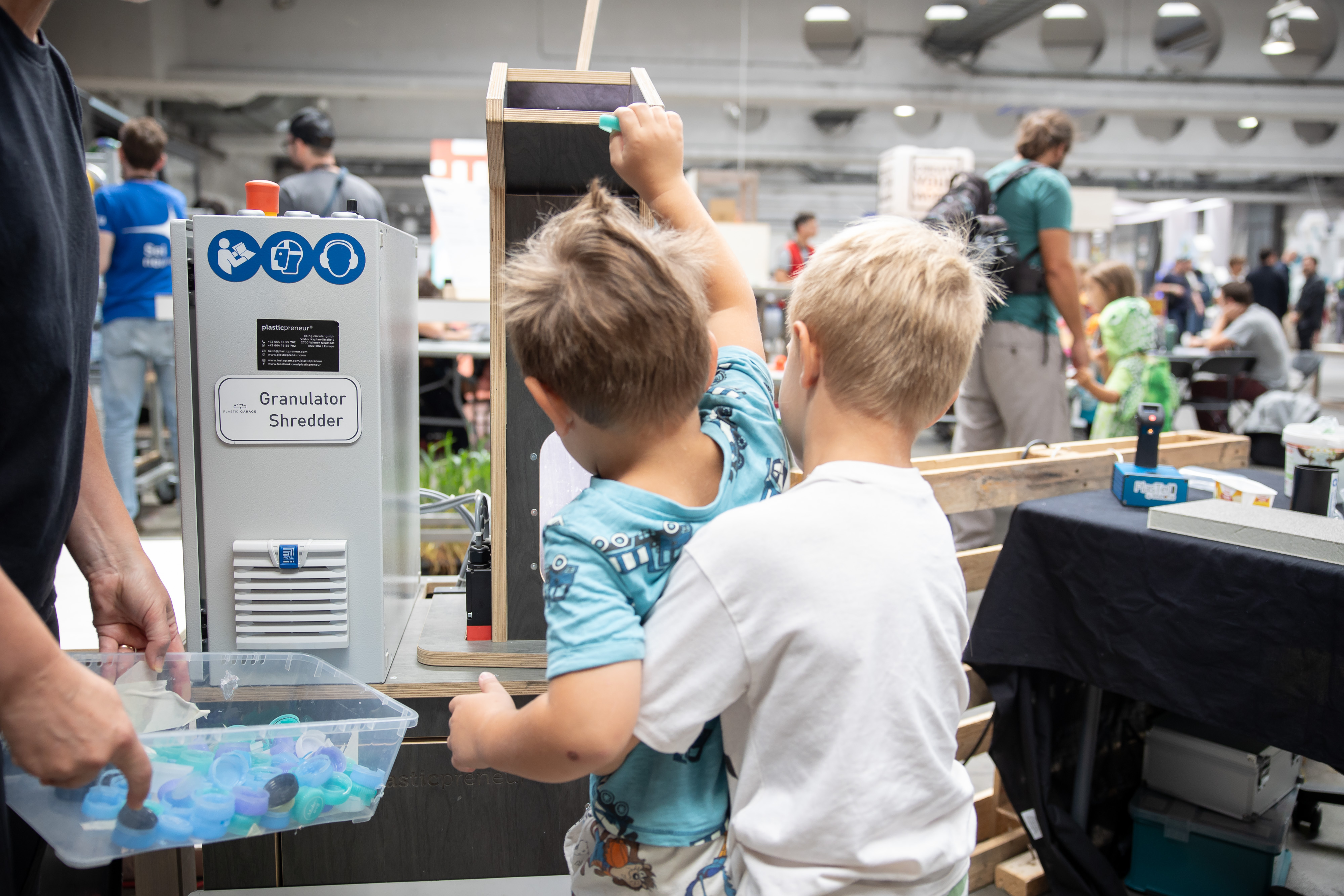 Plastic is durable, versatile, and melts at just 200°C—making it an ideal material for recycling and far too valuable for disposable products. In the Plastic Garage, visitors can try it out for themselves and turn plastic waste into new objects.