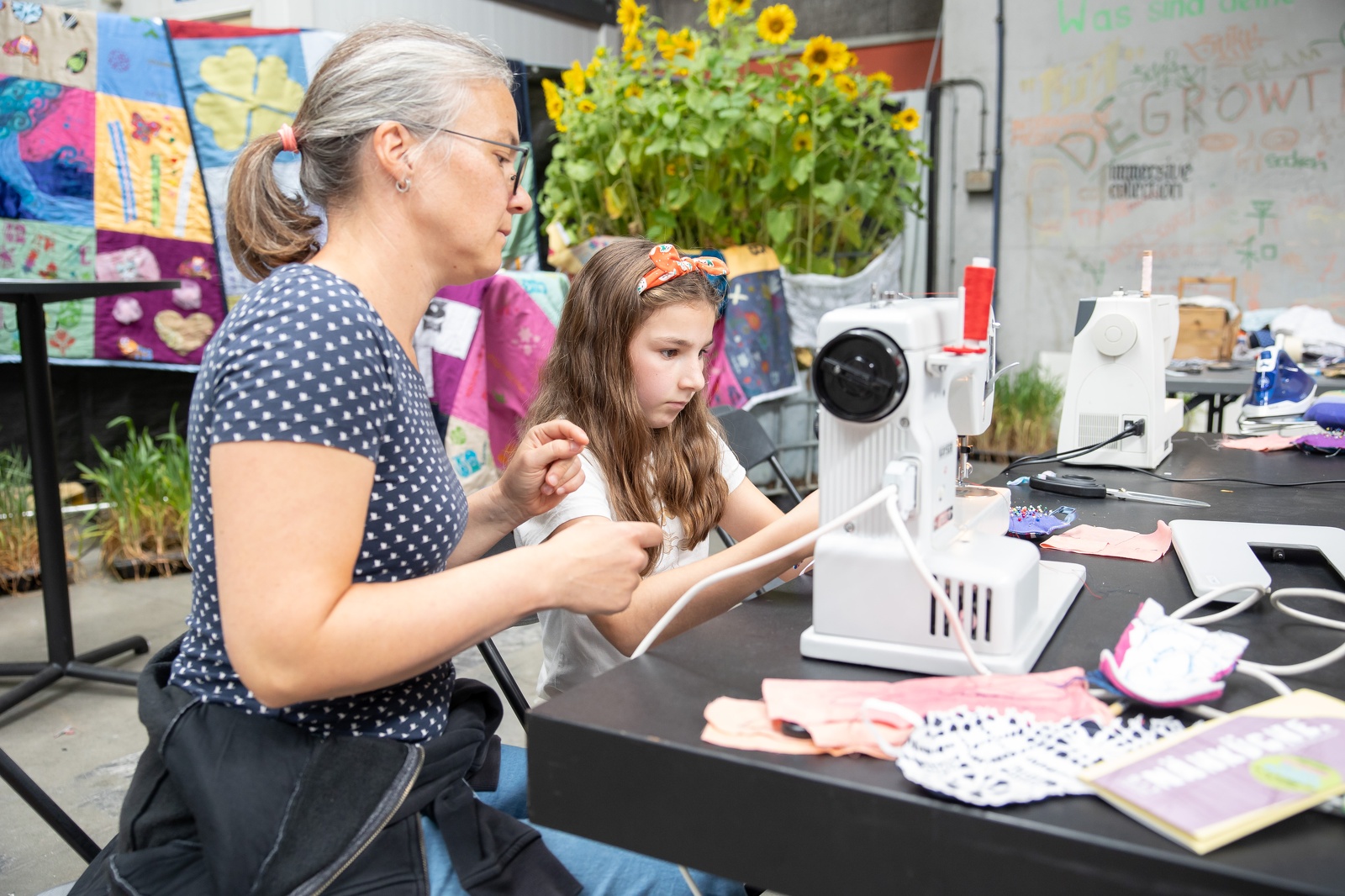 Under the motto If I don't see it, I don't have to panic. the Nähküche invites visitors to sew an eye mask. Using this ironic approach, the project encourages to reflect: Instead of closing our eyes to the challenges of our time, we should face them head on.