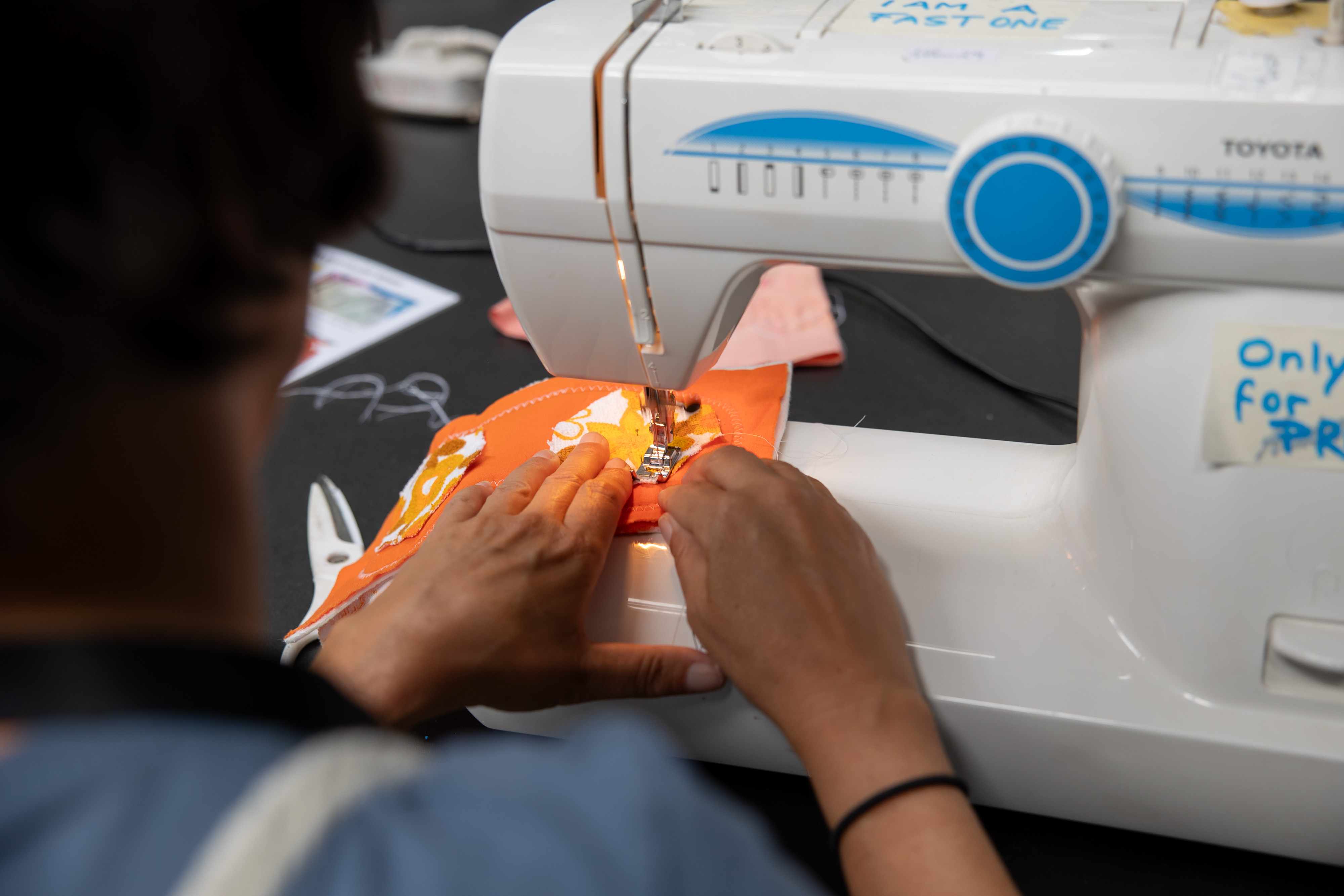 Under the motto If I don't see it, I don't have to panic. the Nähküche invites visitors to sew an eye mask. Using this ironic approach, the project encourages to reflect: Instead of closing our eyes to the challenges of our time, we should face them head on.