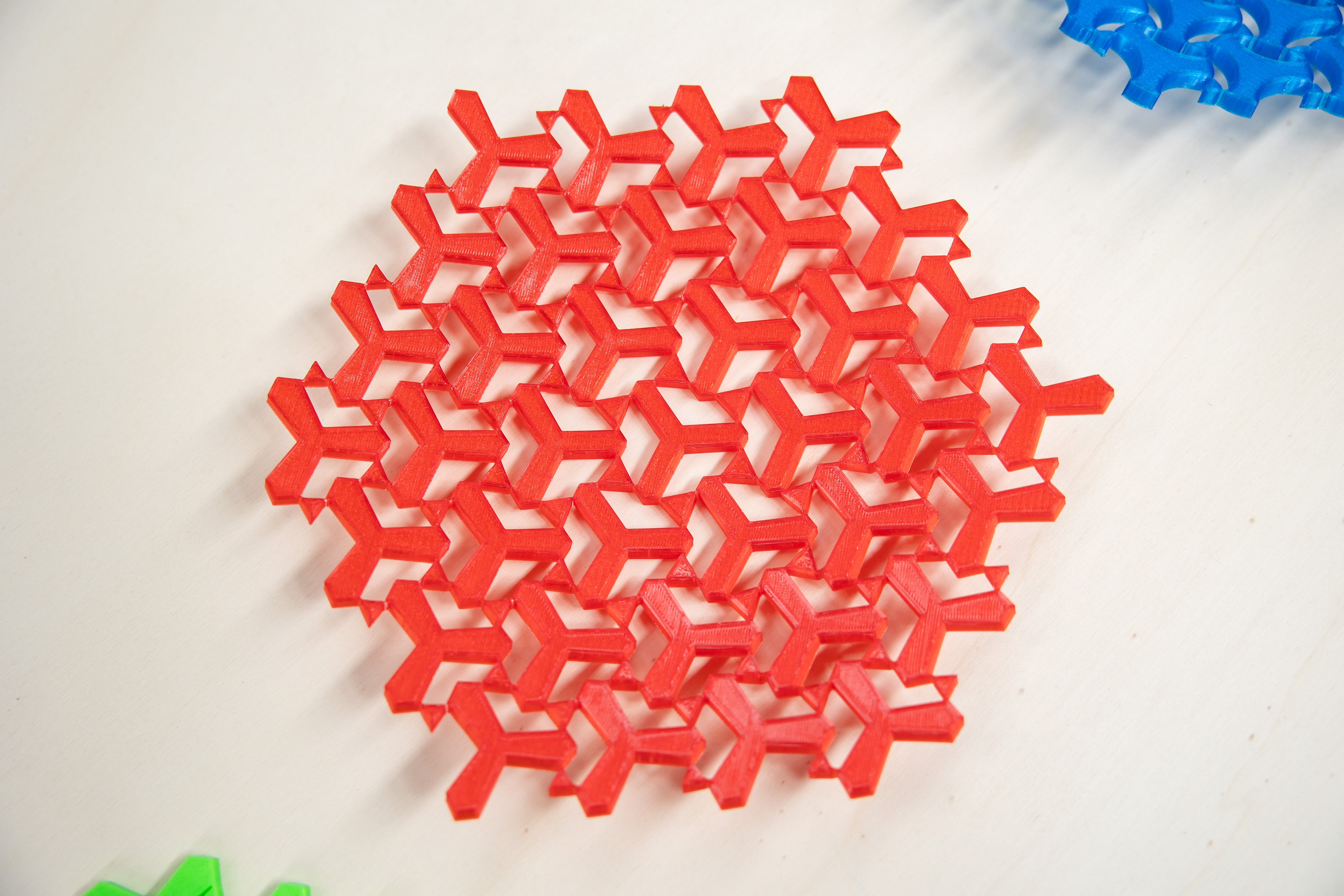 Geometry with a difference: auxetic structures that expand when stretched instead of shrinking. By integrating 3D printing technology, collaborative design, and creative problem-solving, models are produced that could serve as practical everyday products, smart surface materials, or even be used in construction.