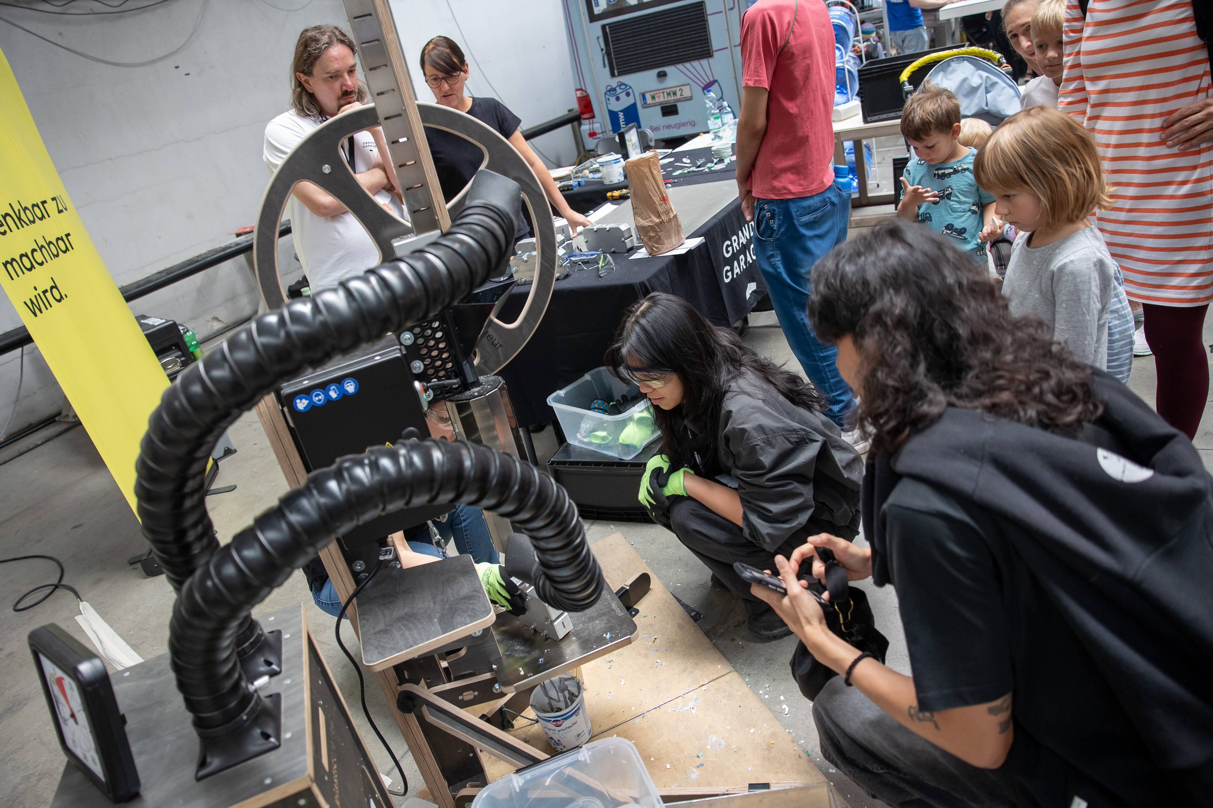 Plastic is durable, versatile, and melts at just 200°C—making it an ideal material for recycling and far too valuable for disposable products. In the Plastic Garage, visitors can try it out for themselves and turn plastic waste into new objects.