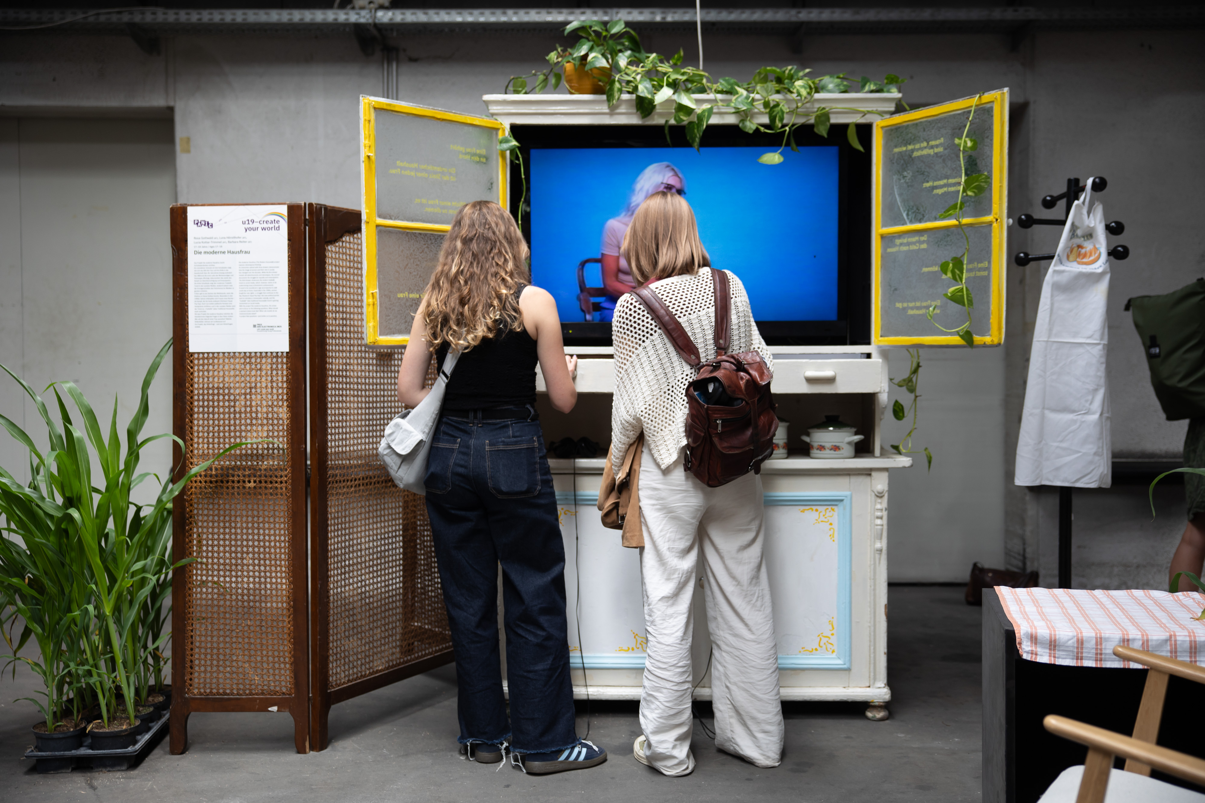 An interactive cabinet with three drawers demonstrates how the image of women and their role in society has changed over the decades. While the first drawer reveals old advertisements and stereotypes, the second documents the struggle for equality and emancipation. The third drawer showcases the modern tradwife trend on social media, which, however, seems to be undermining many of feminism's achievements.