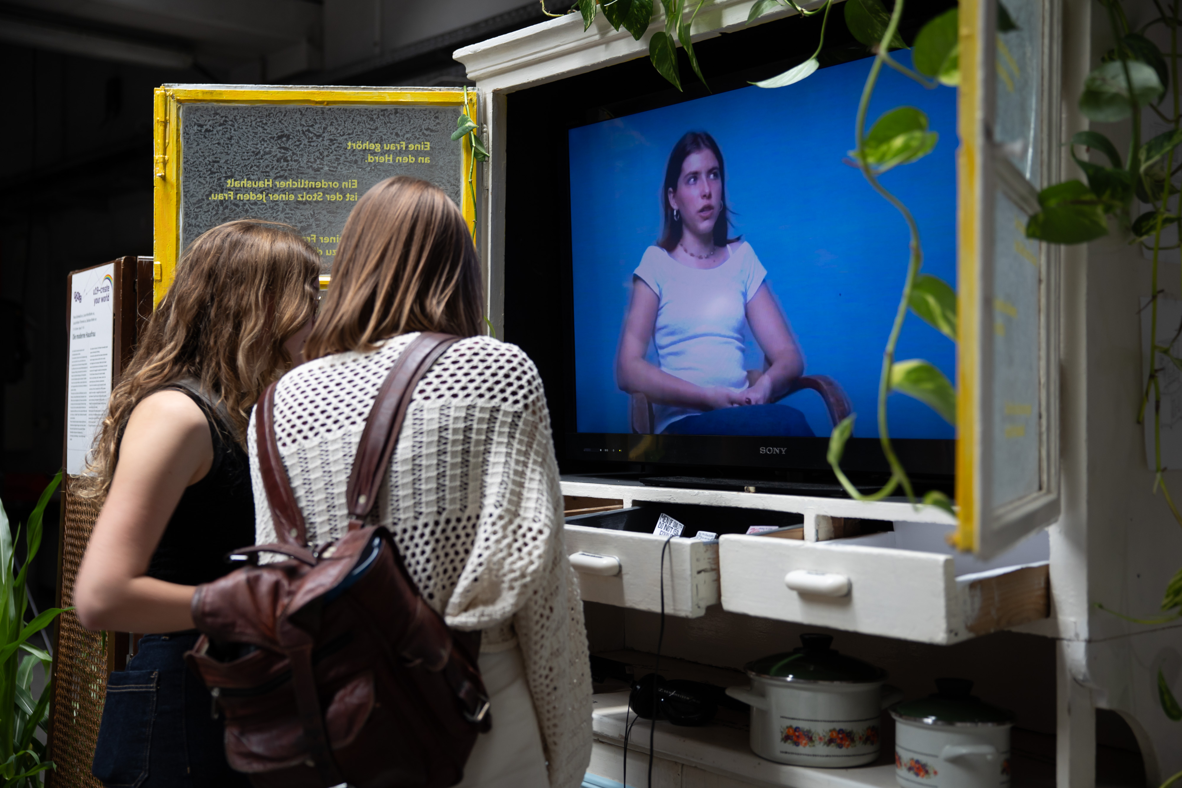 An interactive cabinet with three drawers demonstrates how the image of women and their role in society has changed over the decades. While the first drawer reveals old advertisements and stereotypes, the second documents the struggle for equality and emancipation. The third drawer showcases the modern tradwife trend on social media, which, however, seems to be undermining many of feminism's achievements.