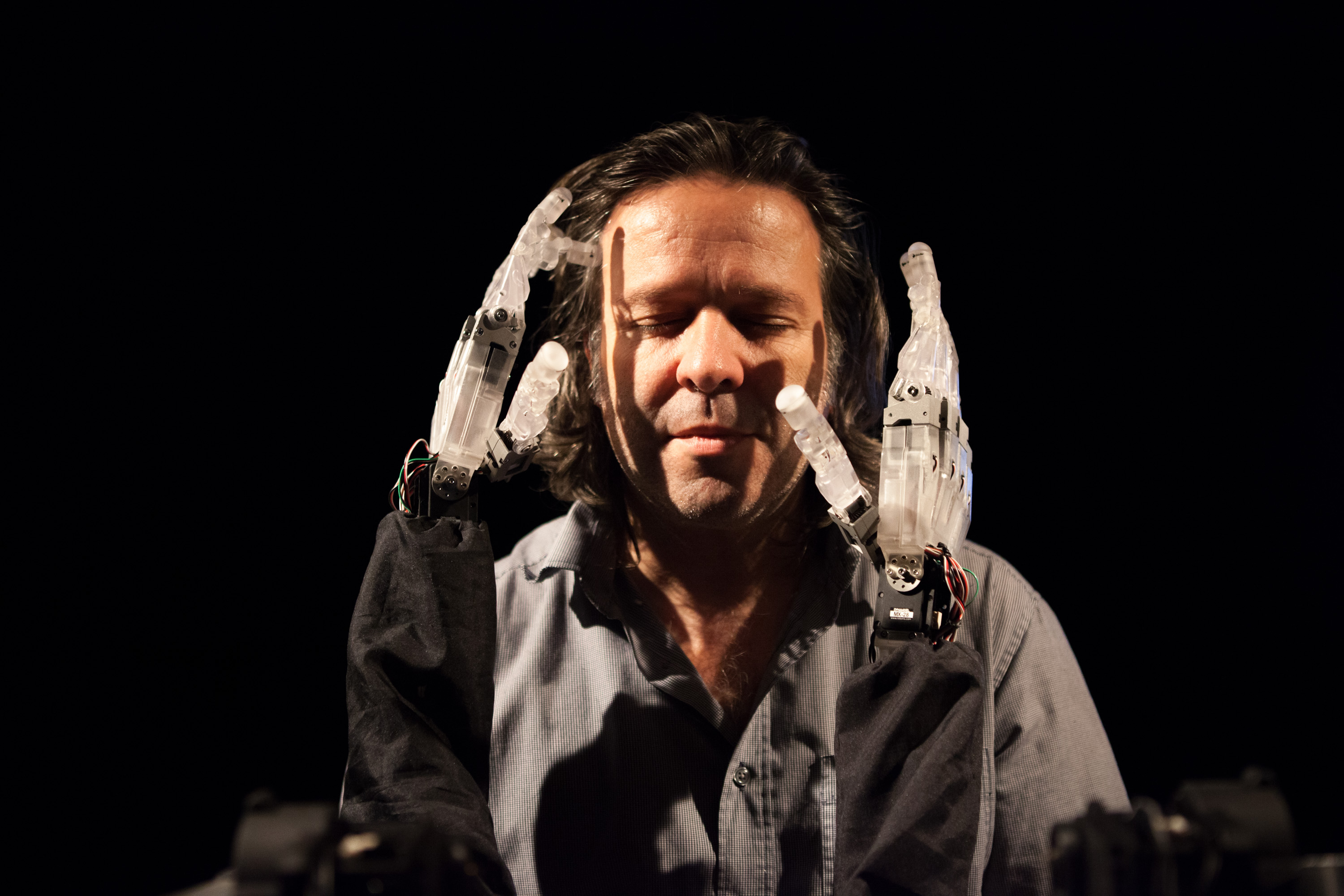 Photo showing Louis-Philippe Demers (CA/SG) and the "Blind Robot".