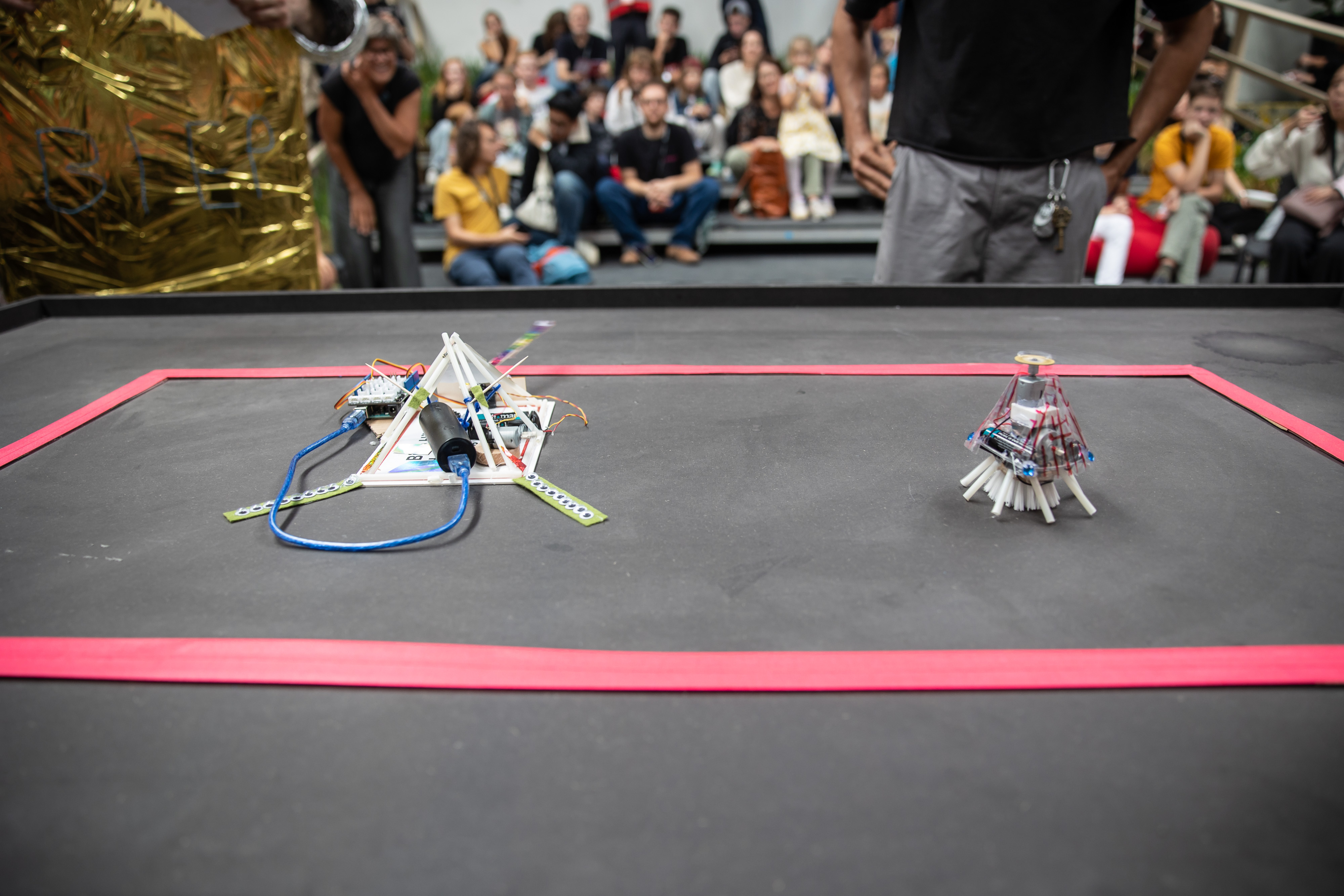 Visitors have the chance to design their own robots and then let them compete against each other in a fun showdown.