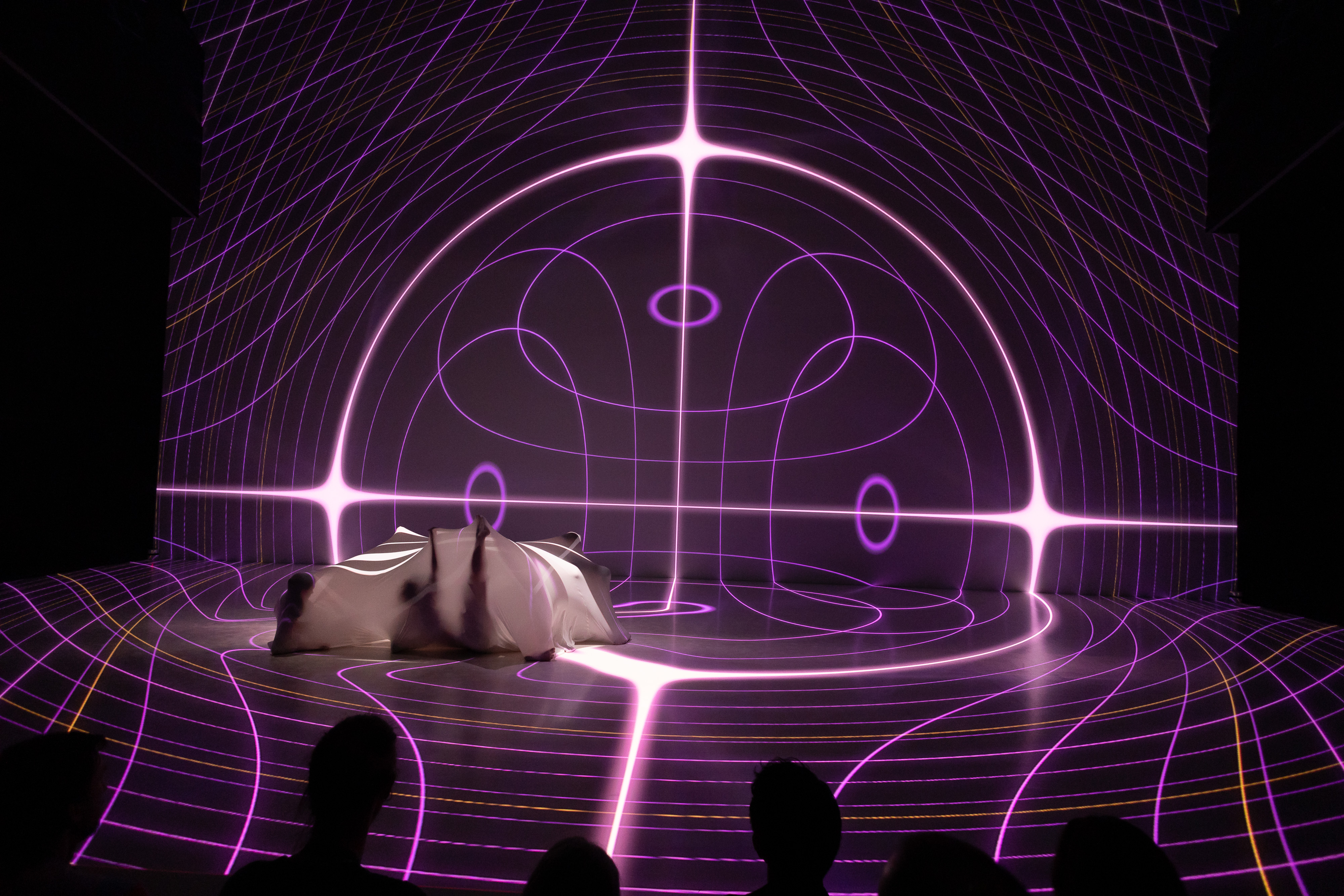 The performance is a result of a collaborative and experimental encounter between transdisciplinary artists (APBU–Dance Institute, University of Arts Linz –Interface Cultures) and scientists from the Institute of Quantum Optics and Quantum Information. Homodyne showcases a multitude of diffracted artistic interpretations of the key research questions within the field of quantum physics and philosophy–from quantum entanglement and quantum gravity, space-time and the motion of molecules–to chaos, superposition and Ancient Chinese Ontology.