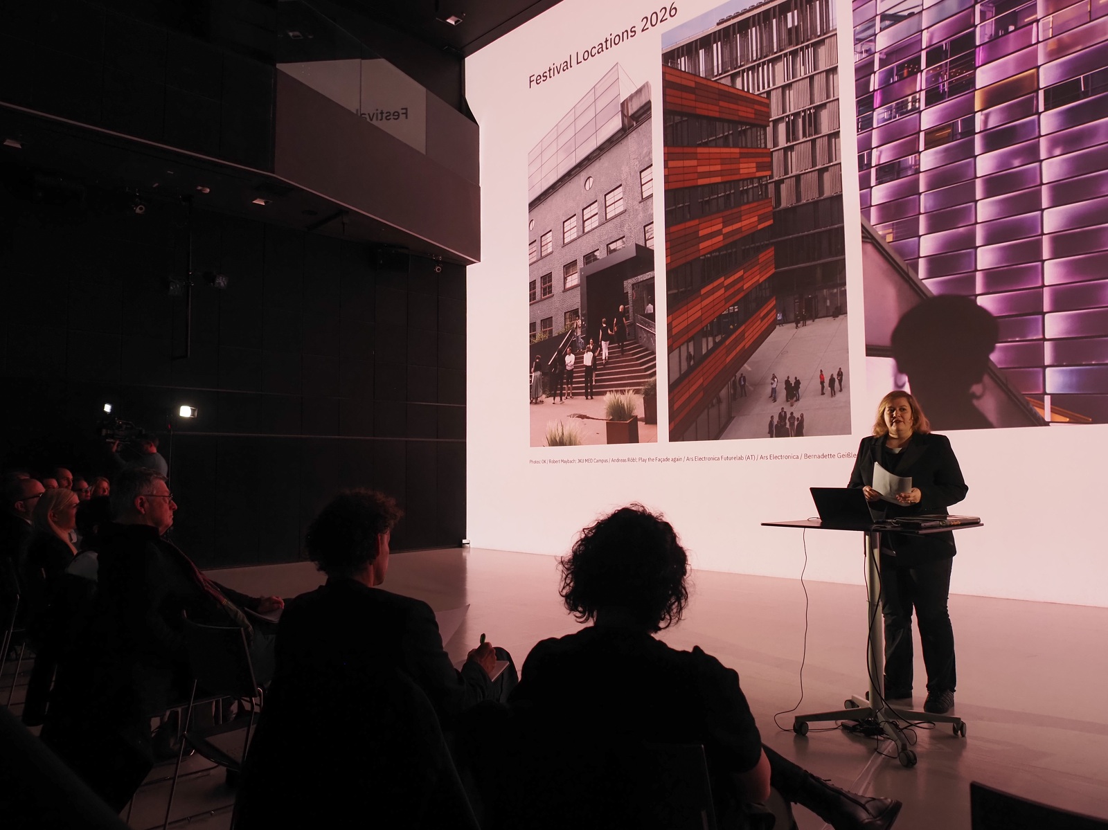 Theme conference on the Ars Electronica Festival 2026 on March 2, 2026, at Deep Space 8K in the Ars Electronica Center.